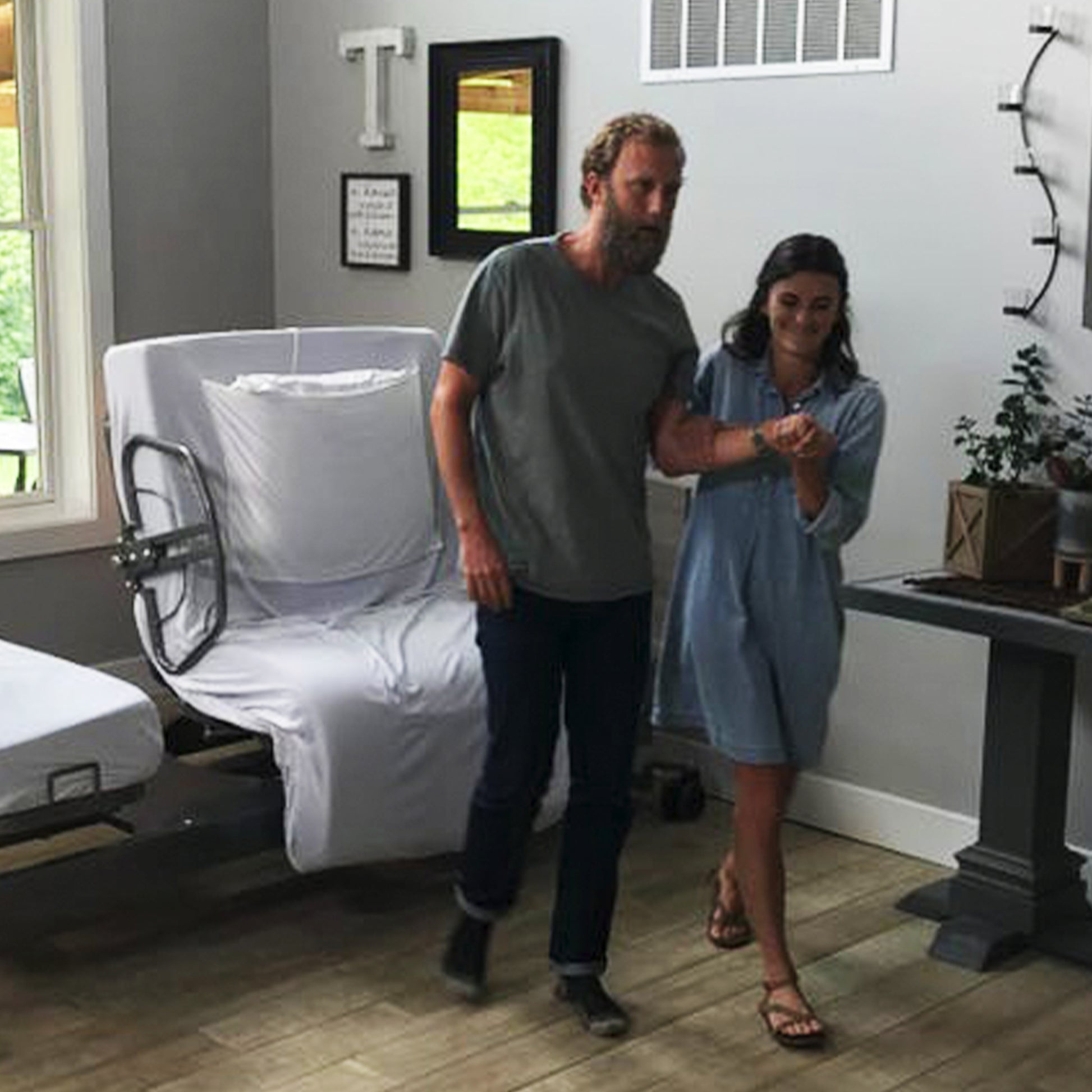 - La función de giro seguro con un botón de la cama permite a los usuarios pasar de estar completamente reclinados a estar completamente sentados con solo tocar un botón.