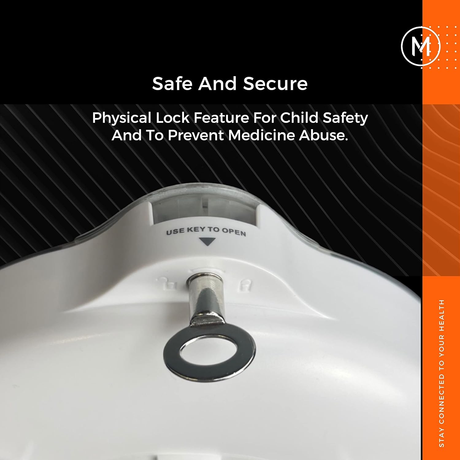 - Seguridad infantil El dispensador está diseñado con dos cerraduras de seguridad para evitar el acceso no deseado a los medicamentos.