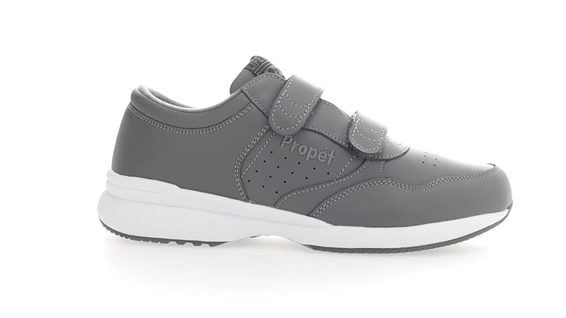 La correa Propet LifeWalker está diseñada para brindar un soporte confiable y fácil de usar a hombres con diabetes , dolor de pies o necesidades ortopédicas . Fabricada con una parte superior de cuero suave y dos correas de velcro , ofrece la comodidad de un calzado sin cordones con la seguridad de un ajuste ceñido y ajustable .