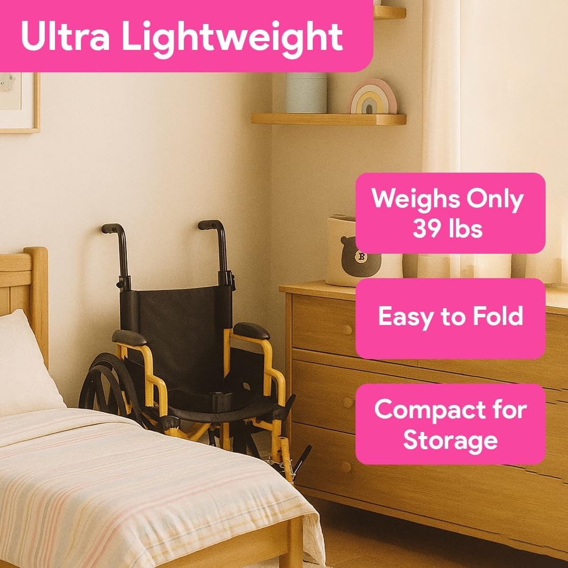 Silla de ruedas pediátrica Smilez, divertida y ligera, para niños con asiento acolchado y antivuelco