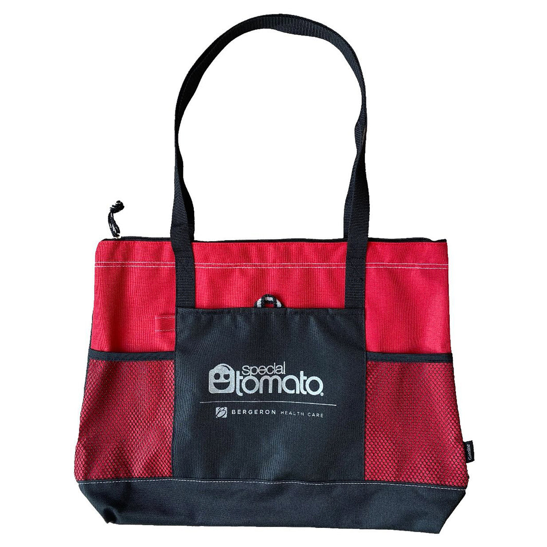 - Canvas Travel Tote with wipe-able interior and exterior pockets