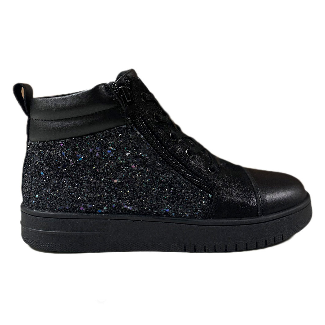 DrD Kids Rodeo Black Sparkle – Diabetic & Orthopedic-Friendly High Top Shoes with Style and Support