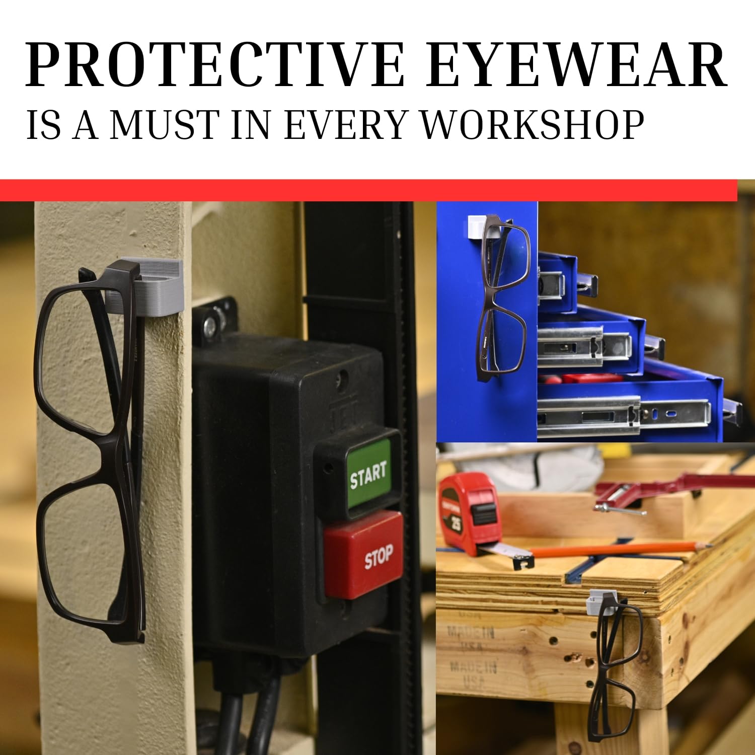- Firm Adhesive Hold - From miter saws to computer monitors, the Glasses Keep sunglasses storage sticks firmly in place. Keep your protective glasses secure in the workshop, by the phone, or on your nightstand - the perfect eye glasses holder!
