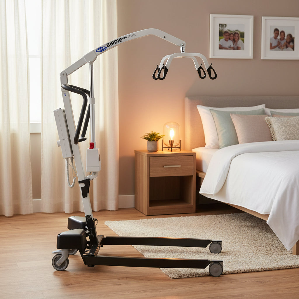 - Innovative Features: The Birdie Evo XPLUS is equipped with Invacare's premier series features, including an updated hook design, ergonomic push bar, and the Slow'R lift arm, designed to minimize caregiver back injury and ensure safe handling.