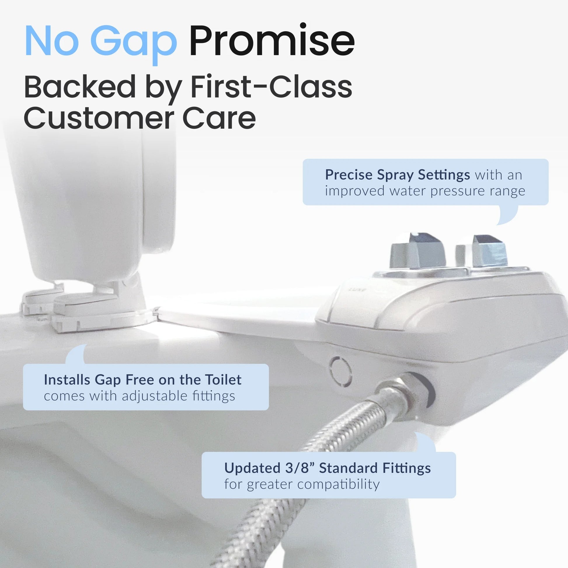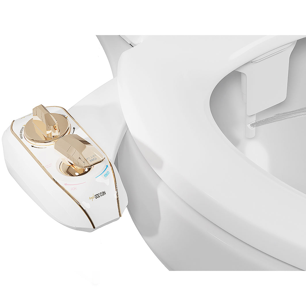 The LUXE Bidet® NEO 320 Plus is a warm water model from our newest line of innovative mechanical bidets. It's equipped with dual wash nozzles along with a mode selection knob and a lever that can control the water temperature & pressure.