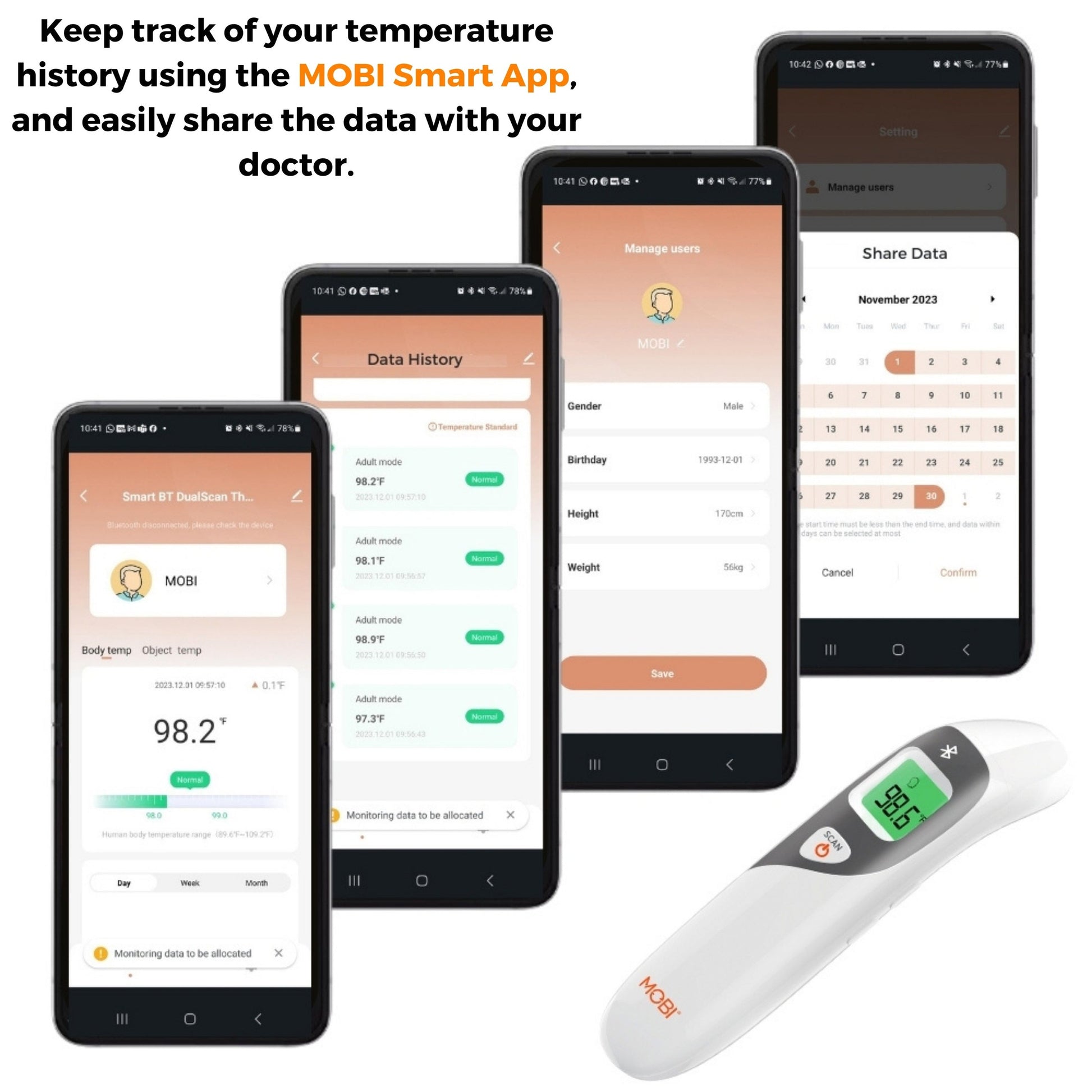 Mobi Smart DualScan Ear and Forehead Bluetooth Thermometer