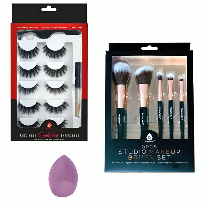 Buy Pursonic Glam Essentials Bundle: 3D Faux Mink Lashes, Makeup Sponge & Brush Set in Bulk & Save – Premium Quality at Wholesale Prices!