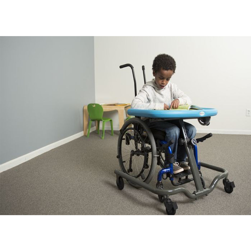 The Special Tomato Mobile Activity Tray (MAT) provides adjustability, maneuverability and versatility for many situations. The Mobile Activity Tray is available in two sizes: Short (table height adjusts from 16 to 21 inches) and Tall (table height adjusts from 20 to 28 inches). The tool-free adjustable height range allows for growth as your child grows into new equipment. It also allows the Mobile Activity Tray to be used with different pieces of equipment: Special Tomato Soft-Touch Sitters, wheelchairs and walkers to name a few. With a base width opening of 28 inches, the Mobile Activity Tray can accommodate most pieces of equipment.
