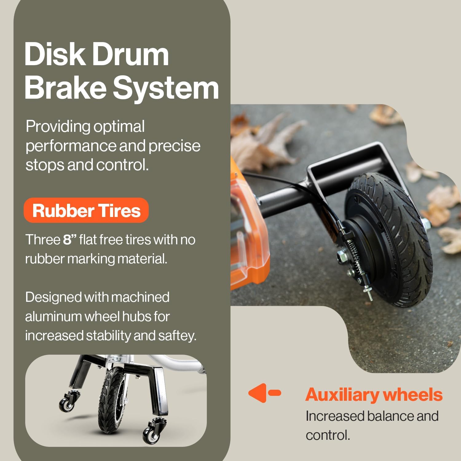 Introducing the Mobility Scooter Plus, designed for comfort and extended range. With two 48V 2Ah batteries, this scooter covers up to 11 miles, supporting a weight limit of 330 pounds.