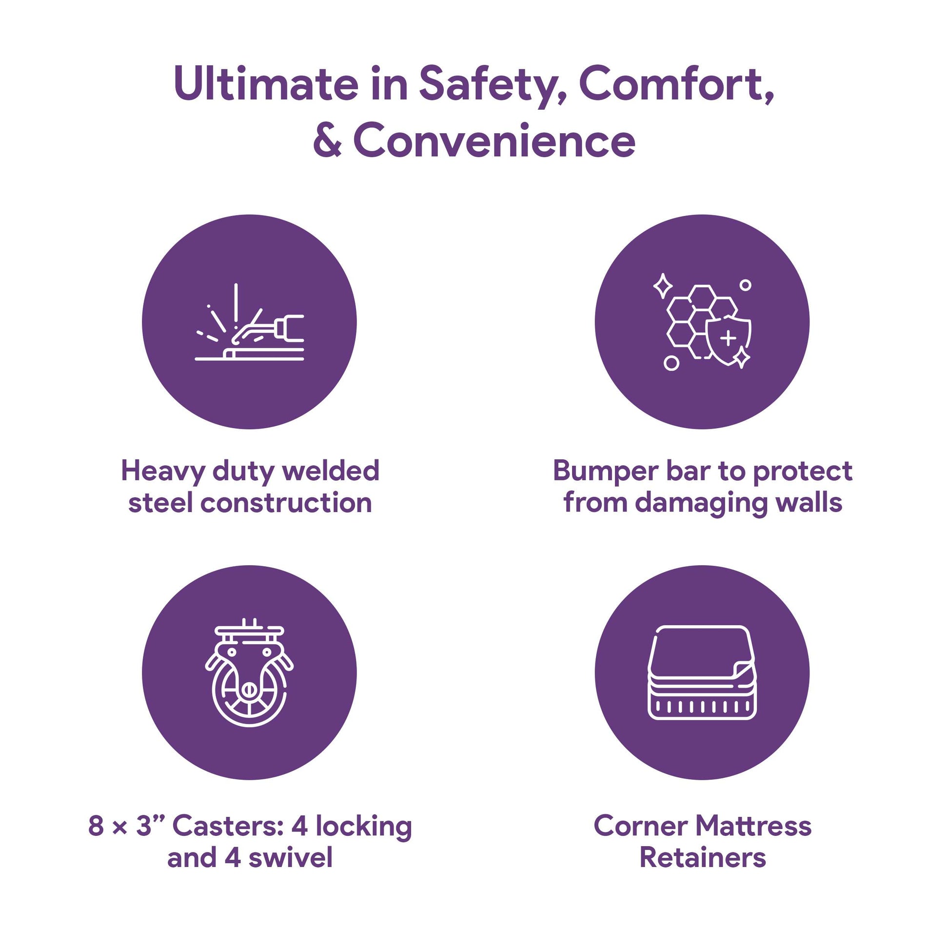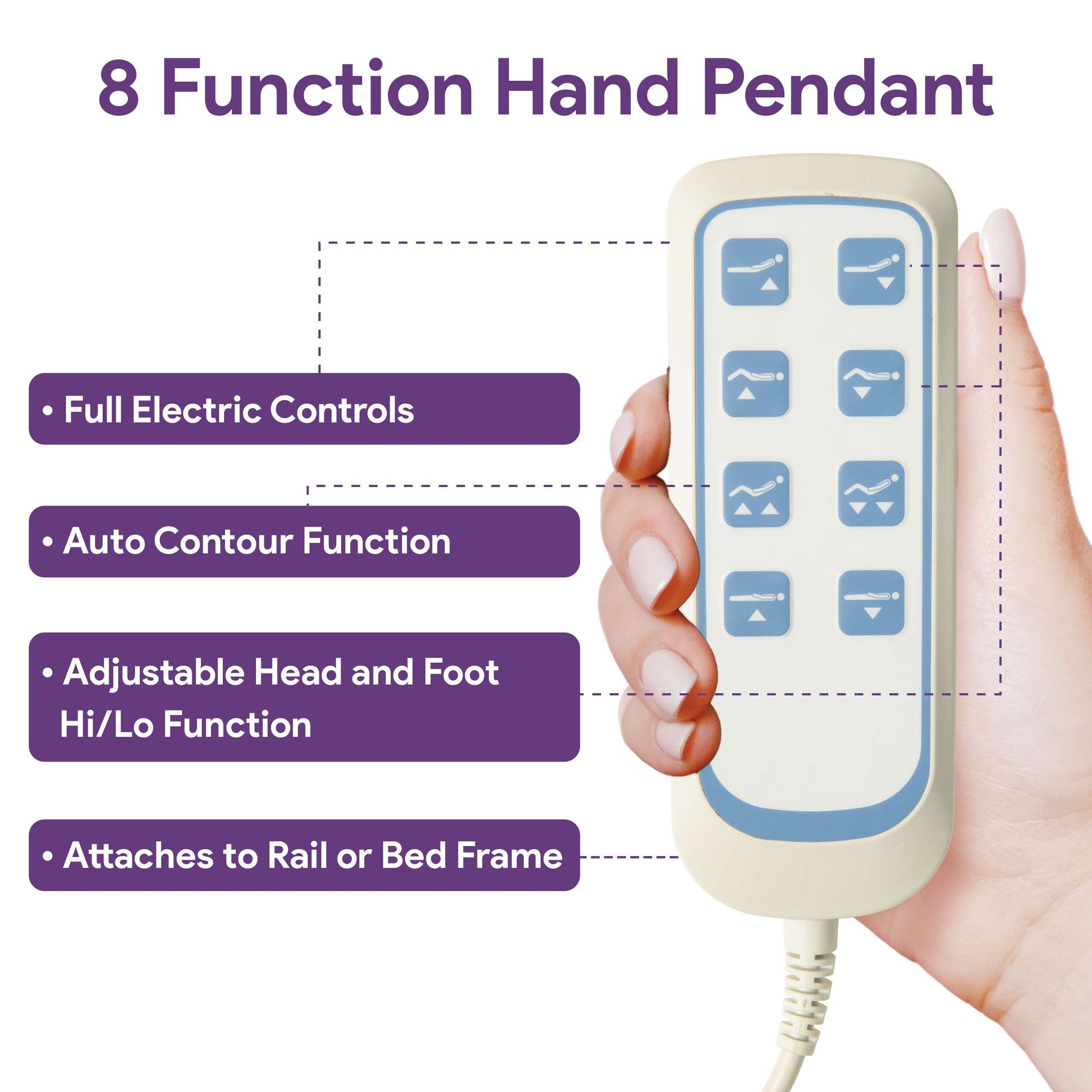 ProHeal Ultra Low Electric Hospital Bed with Qbar Rails – durable, adjustable bed featuring carbon grey boards for safety, comfort, and patient mobility. The optional pressure mattress is made with gel-infused memory foam, which rapidly dissipates heat and increases breathability. It features a 30-degree sloped heel, a removable nylon cover, a 450 lbs capacity, and measures 36"x80"x6".