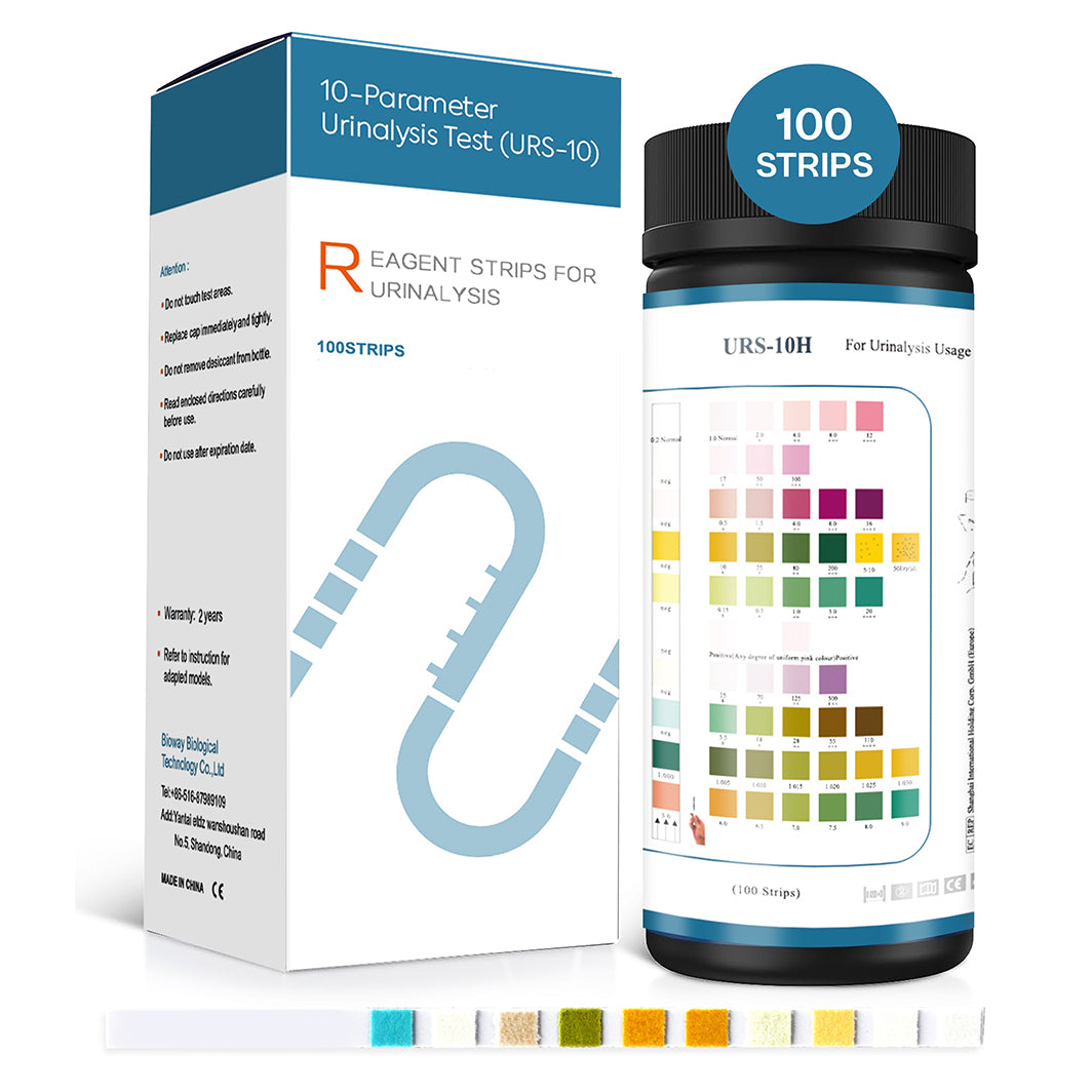 - 10-in-1 Urine Test Strips - Monitor your health from the comfort of home with our 10-parameter urinalysis test strips. Each strip tests for Leukocytes, Nitrite, Urobilinogen, Protein, pH, Blood, Ketones, Specific Gravity, Bilirubin, and Glucose.